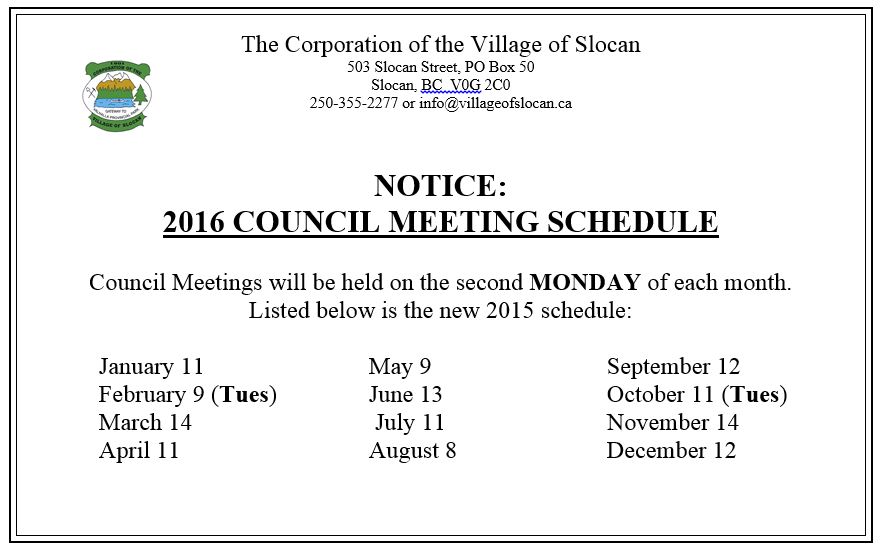 Click here to view the 2016 COUNCIL MEETING SCHEDULE