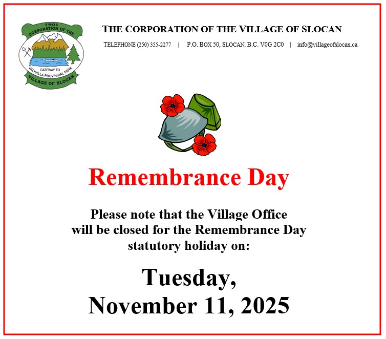 Slocan Social Media Policy – DraftSocial Media tools are quickly becoming commonplace to local governments in an effort to communicate effectively with the public. Our Slocan Mayor and Council has indicated a desire to explore these avenues and wish for the public to come forward with their comments and concerns about the draft “Social Media Policy” listed above. Please submit responses by 12pm on Tuesday, November 12th by email or mail. |