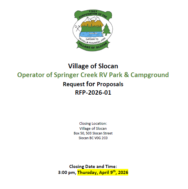 Your responses can be either presented verbally at the January 20th meeting or in writing (e-mails accepted). Please send your response to Jack Richardson CAO, PO Box 50, Slocan BC, V0G 2C0 or to cao@villageofslocan.ca. Deadline for written submissions is February 4, 2014. |